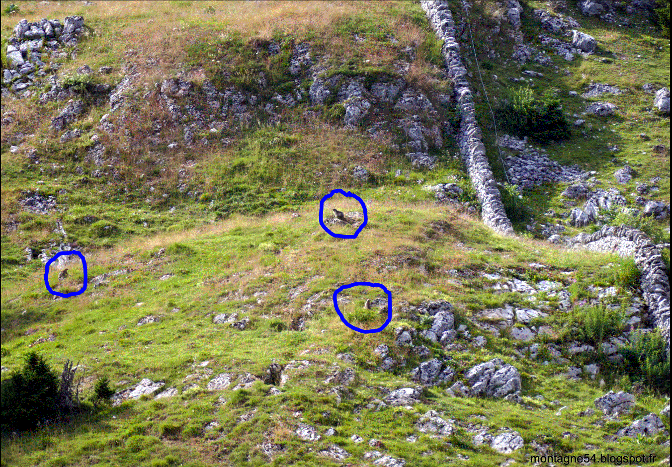 Par contre, découverte de Marmottes dans le Jura, non ce n'est pas une illusion et nous n'avions, même pas abuser du blanc de la région. Dans la combe des Amburnex, nous avons pus observer ces trois marmottes qui étaient bien toniques.